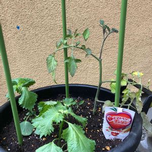 ミニトマトと青じそ。 やっと植え付けしました。 ミニトマトは支柱に巻いていって樹形が高くならないようにしようと思います😋 青じそはコンパニオンプランツとして。 スペースも空いていたので😊