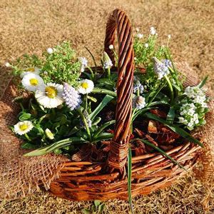 カゴにムスカリの寄せ植えをどうしてもしたくて…。 ムスカリがもう伸びてしまってたのであっちこっち向いてしまった…😅