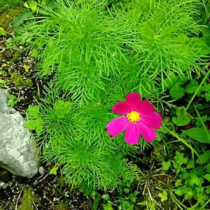✨✴本日のトピックス✴✨ コスモスが咲いた❗ 夏を通り越して秋が来た⁉👀 去年のヒヤシンスの鉢から、どう見ても違う葉っぱ🌿が出てて、もしやと思い地に植え替えたら… この通り‼😲 種が落ちてたんだね😆 ここ、外に面しているから、恥ずかしいから裏に移る? それともこのままでイイ? ねぇ、コスモスさん!😂