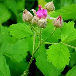 6/17のpicの気になっていた蕾が… 「こんなん出ましたけど!😂」 ということで、咲いたようですが⁉👀 何でしょうねぇ?😅 ⏬⏬⏬ 判りました❗ 「ナワシロイチゴ🍓」だそうです‼😄