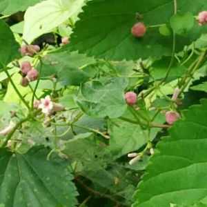 7/28のpicのピンクのボンボンみたいなのは… やはりヘクソカズラの蕾だったような…😓 でも、今、他の場所に生えてるヘクソカズラにはあんなボンボンみたいなのは無いんだけれど…😒