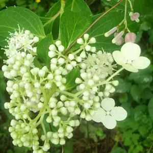 8/14に「この花何ですか?」でUPしたところ… 葉っぱもよく見た方がいいということなので、葉っぱ🌱もわかるように撮りました‼ 風が強かったけれど(最近話題の⁉)ヘクソカズラの蔓が絡み付いていたので、それで押さえてなんとか‼😁 さぁどうでしょうか? 回答頂いてた「ヤブデマリ」にも「ノリウツギ」にも似てますよね。😅 ↓ ↓ 「ノリウツギ」だったようです!☝