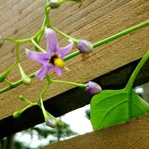 昨日見付けました!😲👀 ナス🍆?色の花だけど、こんな所にありえないし。 何でしょうねぇ? 蕾もあるので、しばらくは様子みてみようっと‼