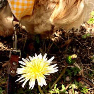 あさんぽ🐾 たんぽぽの横にわた毛…