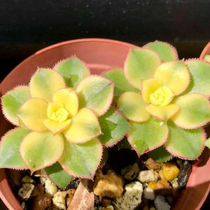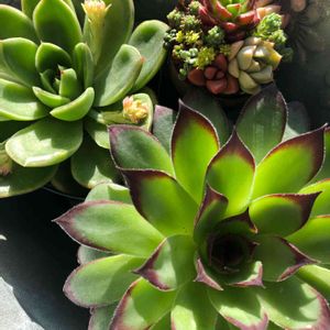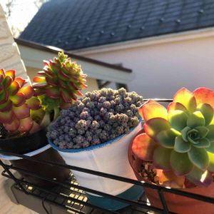 おはようございます☀ 今日も天気良さそう。 2階のベランダの多肉ちゃん。 初めての薄化粧。赤くなるのもここまでかな。 レディジアさん縁取り真っ赤❤️ 真ん中は、パープルヘイズです。 お日様いっぱい浴びてます☀️