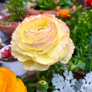 おはようございます 一目惚れしてお迎えした ラナンキュラス 柔らかいレモンイエローに 縁をピンクで彩って😊 今朝はまたちょっと冷えてますね 喉が少し変な感じ…💦な朝です 元気出していこう🙌