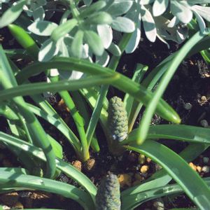 こんばんは🌃 ムスカリの蕾が大きくなっていました。 早く咲かないかな。 最近、ピンクの可愛いムスカリがあるのですね。皆さんのpicで知りました🌸 このムスカリは普通の紫の花が咲きます💜
