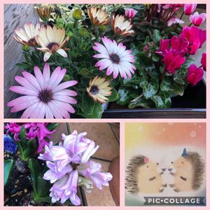 こんにちは*ˊᵕˋ)੭ 朝からずっと冷たい雨が降り続いています☔️ 生憎の雨で外に出れず、桃色探しに行きたかったのですが、玄関のポーチの花🌸で💗 今朝は、子供が部活の試合でお弁当作るために早起きしたのに、中止連絡が入りました。 作ったお弁当は、🍙だったから家族で仲良く分けました😅 🌸ひな祭りですね🎎 右下は、先日パステルアートの教室で書いたハリネズミのおひな様です。
