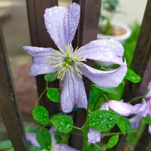 今年から育て始めたクレマチス プリンスチャールズ。 まだ根本から枝が一本しか出ていないけれど、ちゃんと咲いてくれました✨