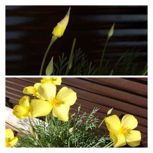 カリフォルニアポピー ハナビシソウ 種をまいたらわんさか芽が出て 花壇にわんさか植えました 今日初めて花が咲きました 蕾が長くて面白いです これからわんさか咲きそうですよ~🙄 GSで名前を教えていただきました😆💕