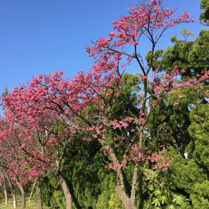 桜前線始まってます🌸 沖縄では先々週北部が満開でした😄 沖縄の青さに負けないくらい濃いピンクの緋寒桜です✨