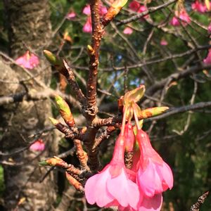 昨日の投稿と同じ場所にある緋寒桜🌸 ピンクが濃くて、下向きに咲くのが特徴みたいです