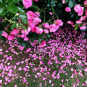 台風崩れの雨☔️( '-' ☔️ )と強風で あっという間に薔薇はこんな状態になってしまった(>_<) でもバラの花びらの絨毯綺麗✨😍