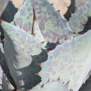 ①〜③マンガべ✕アガベの【血雨雷神】ちゃん✨ ④⑤ランポー玉ちゃんが開花✨ マンガべのブラッドスポット(血雨)とアガベのポタトラム(雷神)のまぜこぜで、この物騒な雰囲気の名前🤣 アガベの姿にマンガべのドット柄は反則級🤭 新葉のエメラルドグリーンに紫のドットに赤いトゲがホント綺麗🤤 冬明けは葉が伸びまくってたけど、夏に出る葉はしっかりしてて良き👍 根詰まり気味を鉢増ししたから大きくなってね⤴️⤴️ ランポー玉ちゃんがお花見せてくれた😍 ボディーのサイズが大きくても、お花は大体同じサイズみたい🤭 ホントキラキラで綺麗なお花✨ 雌しべが手を拡げてるみたいで可愛い🤤