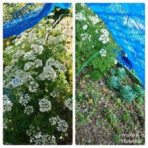 先日、載せたオルレアと、 隣にある地植えコーナーの 上にネットを張りました😆 だって、真上には🍒の木が❗️ 大きくなった七福神の上に落ちちゃうんだもの❗️😅 苦肉の策です💦