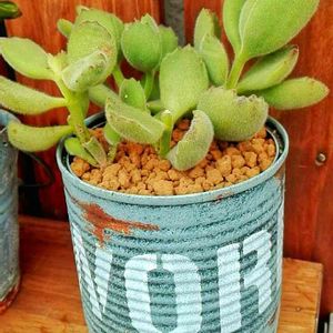 久々のリメ缶。 この前買った熊童子、カットして親株はビニールポットのままにしてたら調子悪そう··· 植え替えに耐えられるかな💦