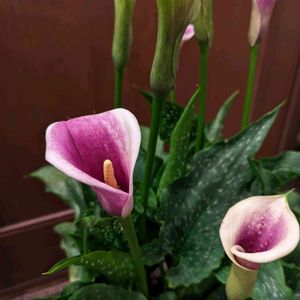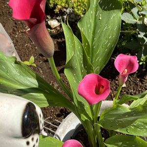 カラーが咲き出しました。 以前の職場から貰った子達 去年は咲いてない子もいるから 今年は何色が咲くか楽しみ😊
