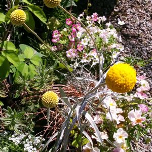クラスペディア グロボーサ 丸い玉がかわいいですね。写真撮るの難しかった😅 切り花とかドライフラワーで人気らしいですが、2本しか花が出てないので、それは来年の楽しみかな。