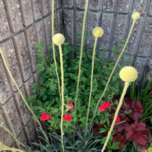 鉢でイエローのビオラと花かんざしとコラボ…のはずがビオラさんの成長がゆっくりすぎて…😅 背が高いので庭植えしたいけれど、暑さに弱いらしいのでそれは無理かもです🥺