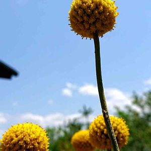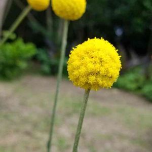 黄色い💛ポンポン玉🌕 みたいな🌟 ふしぎなお花〜💛 クラスペディア・グロボーサ というキク科の植物🌿 オーストラリア原産🇦🇺ゆえに個性的な形ですね💛 茎が長〜〜っ( ̄∀ ̄)😆 ドライにして、花材に使えそうですよ😊 🌕ポンポン🌕育つと良いな〜💛 黄色い🌕玉コロチャン🌕🎶🌕♬🌕♪ とか、 ポンポン玉🌕とか呼んでしまう💛