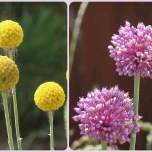 おはようございます☺️ 「ボール状の可愛い花」 散策路脇の畑に大小2つのボール状の花が咲いていました。 左はクラスペディア グロボーサ、右はニンニクと教えていただきました。 しーちゃんさん、sachiさん、かんすみさん、ありがとうございました。 撮影日 2020.6.9