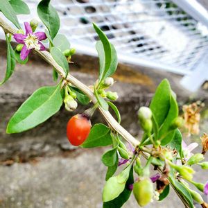 ガードレール脇のクコの木 実が赤くなりました 「杏仁豆腐」の上にのっているあの赤い小さなドライフルーツ💓 ーーーーーーーーーー 🗒️ クコの実は熟すと朱色になるが、自然に落ちることが少なく、長い間、木の上に残ります。また、翌年の花期に熟すため、花と実が一緒にできるように見えます。 🗒️ 中国ではクコの実を「津枸杞」、ナガバクコは「寧夏枸杞」として区別する。 春の新芽(天精草)や夏の茎(長生藤)、秋の実(枸杞子)、冬の根(仙人杖)のすべてが宝だといわれており、それぞれさまざまな症状に使用されています。