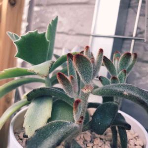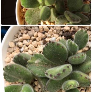 寒さに弱いと知らず外に出しっぱなしで弱っていたもけもけ達を植え替え。 12月に買った黄斑熊童子錦がまさかの未発根でした😱 増えてると思ってたのに…外側の葉がペラペラになってる。 砂かぶってるのは昨日の事故のせい。 まったく取れないε٩(๑>ω<)۶з