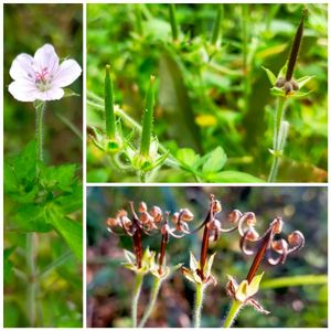 夏から秋にかけてのゲンノショウコの変化🧐 左から可憐な花期→青々しい花後の実→小さな種がクルンと持ち上がってます! リズミカルに並ぶ姿が可愛い😍