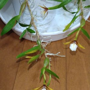 小さくて可愛い花 シンビジュームの原種でポリプロポン です 面白い名前ですね😊 木陰にぶら下げておけば良いと聞きました 場所いらずで良いかも😁 冬場は他の蘭と同じに部屋に入れます