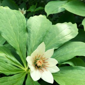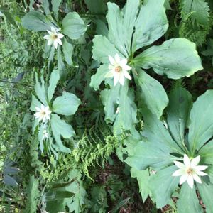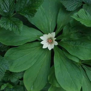 栂池自然園 大きなキヌガサソウも咲いていました💠❣️ 花びらの数と葉の数が同じなんですね😃 2019.08.17撮影