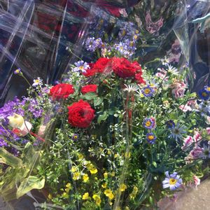 連投すみません 主人の母は小さい時に亡くなっているので 白いカーネーションをお供えし お母さん代わりになってくれていた 叔母さんと伯母さんには ミニ薔薇とブルーデイジーをメインにして 寄せ植えを作り二鉢持参しました💓 家の近くでラッピングをしたら 素人なりに…それらしく🎁なりました。 一手間かけるって大事なんですね🎵 喜んでくれましたが主人作とは 誰もが思っていませんでした‼️ 40歳過ぎた甥っこが寄せ植えするとは 思わないですょね〜〜❣