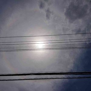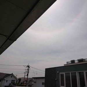 こんにちは… 仕事中、11時前 ふと空を見上げたら 虹🌈🌈🌈が… 良く見るとハロ(日暈)…