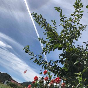 🏷雲仲間 🏷土曜はお空の発表会 参加させて頂きます♪ 飛行機✈️雲 ↙️後で気づきましたが 🐦飛んでます👀 🧡✨💛🧡🍃🧡✨💛🍃🧡✨💛 過去pic 2021年9月13日11時38分撮影