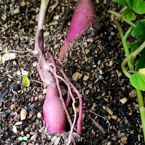 9月?にいったん収穫したものの、おいもが小さすぎて植え戻したサツマイモ、まだまだ成長していて枯れないのでほっといてるのですが、今朝芋が見えてることに気が付きました。埋め戻す前よりは大きくなってる、気がします。