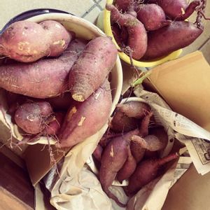 そろそろだいぶ寒くなってきたので、埋め戻したさつまいもを収穫してきました。9月?に収穫して埋め戻す前は、1枚目左下くらいサイズがせいぜい…って感じの芋ばかりだったのが、しっかり焼き芋サイズに成長してくれました。 小さいのは来年の種芋用に一応保管。大きいのは昼はカゴごと天日干し、夜は室内に入れて乾燥させます。どうか、腐りませんように...
