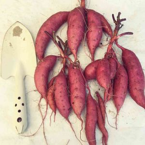 サツマイモ第二段! 地植えのサツマイモ、ツルもぐんぐん伸び何度かのツル返し?もしてそれでも尚ワッサワサの葉、それは期待しました。 プランターであのボリュームなら地植えなら…😋とワクワクしながら今日は次男に手伝ってもらって掘り上げました。 でも…あれ?これだけ?😥 残念ながらプランターの方が成績よかった💦今夜はなすと共に天ぷらにでもします。 サツマイモも無くなったし、後は茄子か終わったら、秋冬仕立ての庭にしていきたいです😊