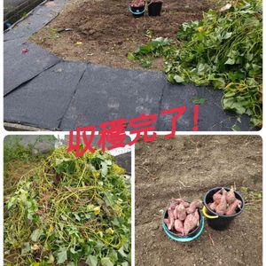 以前、野菜カゴの中で忘れられたまま、ひっそりと芽を出していた子。 ダメ元でプランターと地植えに植えてみた😊 プランターの方が一足先に収穫期を迎えたようだったので今朝、掘り上げてみました。 思ったより立派な可愛い子が出来てました😊