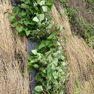 サツマイモは祖父曰くあんまり育ってねぇなぁって言う感じらしいです。笑 でも試しにツル持ち上げてみたらブツブツっと土から抜ける感触があったのでツル返ししました😊👌