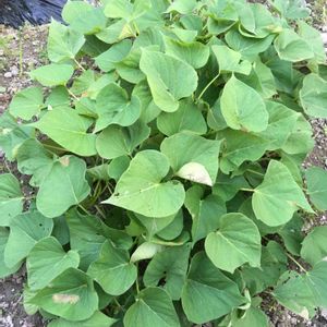 こんにちは😆 サツマイモ(金時) 葉っぱ🍃が凄いことに なってきました😆 バッタの食料になっています😞 コラッ!