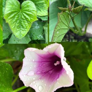 大雨の中、庭のお花🌸🌼や、 畑の芋🍠などすごく元気です。 イキイキしてますね😁
