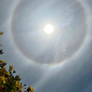 🏷土曜はお空の発表会用を撮ってたら 太陽の周りに虹色の輪が↘️太陽 ハロと言うらしい 天気の下り坂のサインだって 天気予報見ると19:00から雨☂️予報 当たるかな❓ ハロ見えますか❓