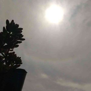 おはようございます😊 今日は大雨☔️ 昨日、大木を撮ったら偶然に お日様にハロが出ていました😊