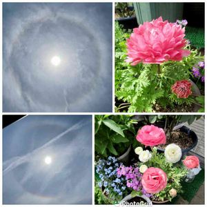 今日もハロ現象(日暈)見えました🌈 正確には見えてます👀 お天気下り坂なのかな? お日様でていても寒いです💦 ラナンキュラスやアネモネが次々咲いて 華やかさをプラス 寒いけど春ですね〜☺