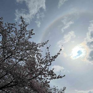 桜 & ハロ(HALO) とても綺麗な桜を眺めていたら ハロに気付きました❗️ お天気が下り坂のサインです❗️ この後曇り空になり☁️☁️☁️ 段々と寒くなってきました💦 今日行って良かった❣️🌸🌸🌸