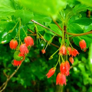 昨日湯治のため訪れたローソク温泉 ①②散策中に初めて出会ったベニドウダン❣️❣️❣️ ③④ハイノキ?サワフタギ? 真っ白モフモフで可愛い🤍🤍 ⑤アベリアの花後の萼片も可愛いですね💕