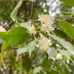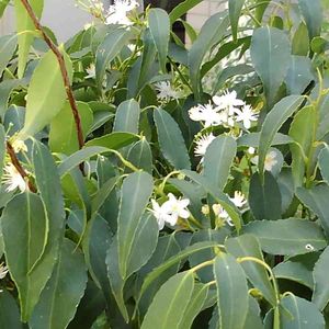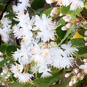 6日前、まだ蕾だった🌼ハイノキ🌼に可愛らしい白いお花が咲いていました🤗💖 先の尖った細長い葉っぱも特徴的です🤚