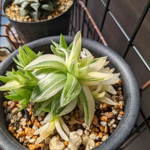 今日のハオルチア🍀は「京の華錦」です。 斑がいい感じです。😊 仔株が2つ顔を出し始めました。少しずつ斑入り株が世の中に浸透し入手しやすくなりましね。でもまだまだ高価なので、本当に魅力的な株には手が出ません。😅 皆さんは、どちらで入手していますか?