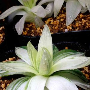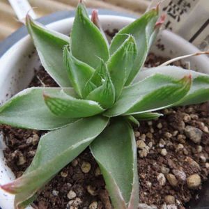 【ハオルシア属・ハオルチア属 京の華錦】 Haworthia cymbiformis var.angustana f. variegata タニ友さんに譲っていただいた、 真っ白で斑入りのハオルシア🌱 お湯飲み茶碗に植えました🍵 ( ・ω・)∩シツモーン どなたか名前を 教えていただけますか? 因みに人工知能の回答は樹氷 サスガニソレハ、チガウトオモウ (*‘ω‘ *) 🌱お礼🌱 むー様とガスてり様に 名前を教えていただきました 有難うございます( ꈍᴗꈍ) 🥩追記🥩 「angustana」って何だろう? と検索したところ、 焼き肉に出てくるあのサンチュが ヒットしました (◕દ◕) Lactuca sativa var. angustana 英名は Celtuce, Stem lettuce
