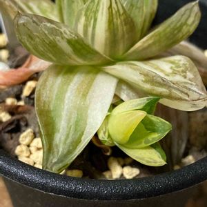 ハオルチア 軟葉系 京の華錦 昨年夏のハウス閉める前の河野自然園さんからのお買い得品😊 株分けした斑入りの部分🌱 だいぶ成長したけど斑が多め😅 このままいけるかな?