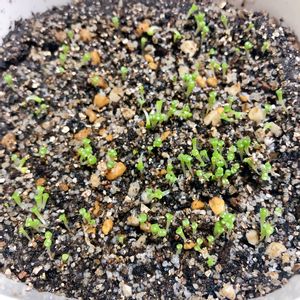 蒔いてから約2週間でたぶん126粒発芽…! まだ発芽していない種が見えるのでまだ増えそうです。 100粒入りだったはずでは…? またカビが少し出ていたところを取り除きました。 ベンレート水で腰水してますが、絶対カビが出ないわけではないですね。